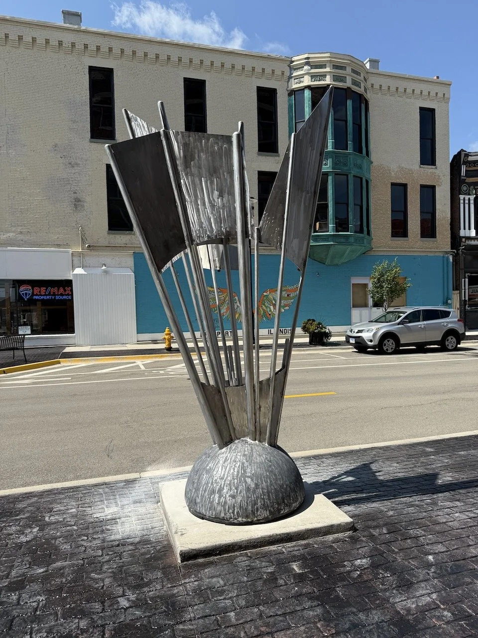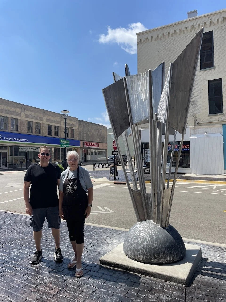 A big thank-you to the friendly public works folks in Freeport and Rock Falls. Proper planning made everything go smoothly with no major snafus. Hard work and little sleep, but I enjoy a challenge, seeing new places, and meeting other people who share my passion for bringing art to public spaces.
