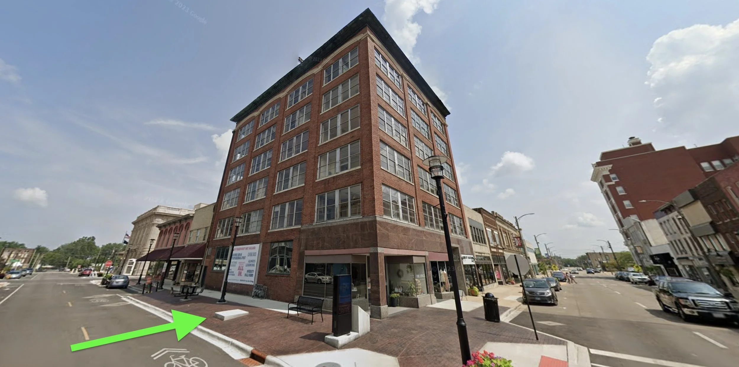 at the corner of E Stephenson St and N Chicago Ave