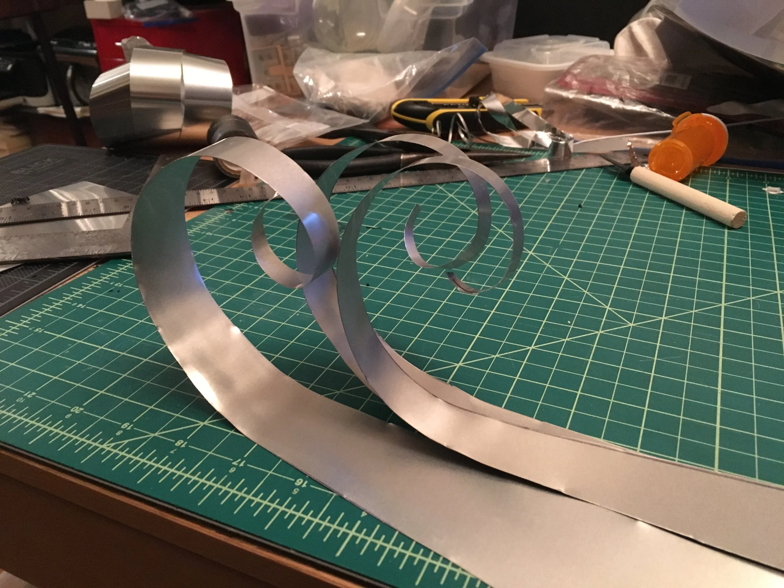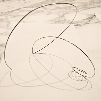 My assigned design partner, Jeff Sundheim, had been exploring spiral line gestures, and seeing no way to merge my many previous iterations, my inspiration came from noticing the shadows that one of Jeff's sculptures cast onto the table.